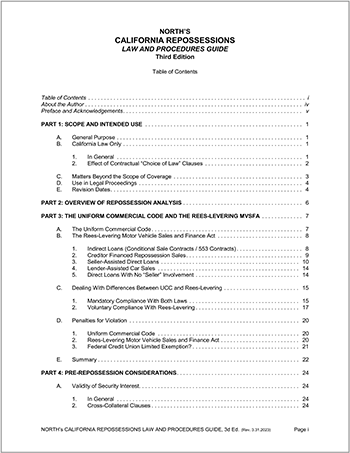 1 The earlier Second Edition of the Repo Guide and the forms included with it no longer comply with or adequately explain California law after 12/31/2022. As a result, those items have been retired and NorthLegal no longer recommends their use.
